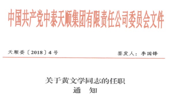關(guān)于黃文學(xué)同志的任職通知