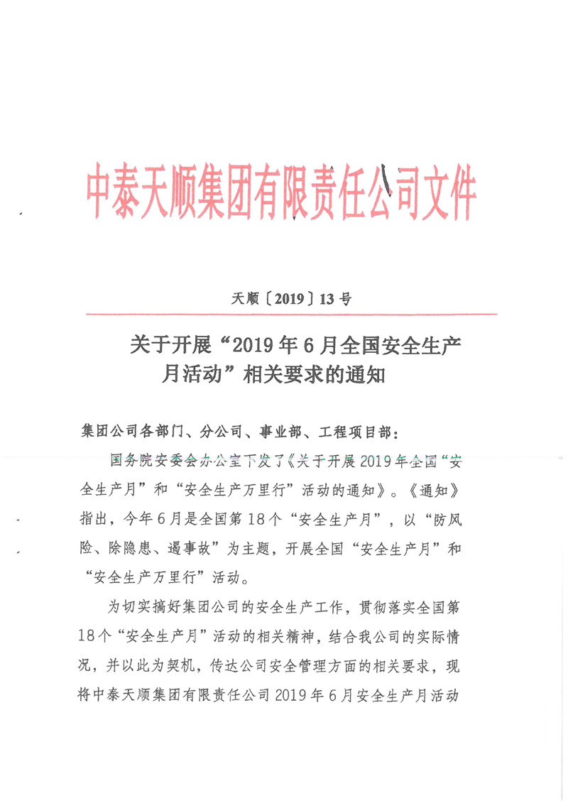 關(guān)于開(kāi)展“2019年6月全國(guó)安全生產(chǎn)月活動(dòng)”相關(guān)要求的通知
