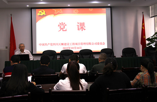 2015年10月16日下午,中國共產黨四川天順建設工程項目管理有限公司委員會組織上黨課,50多名黨員、入黨積極分子上了參加了學習。